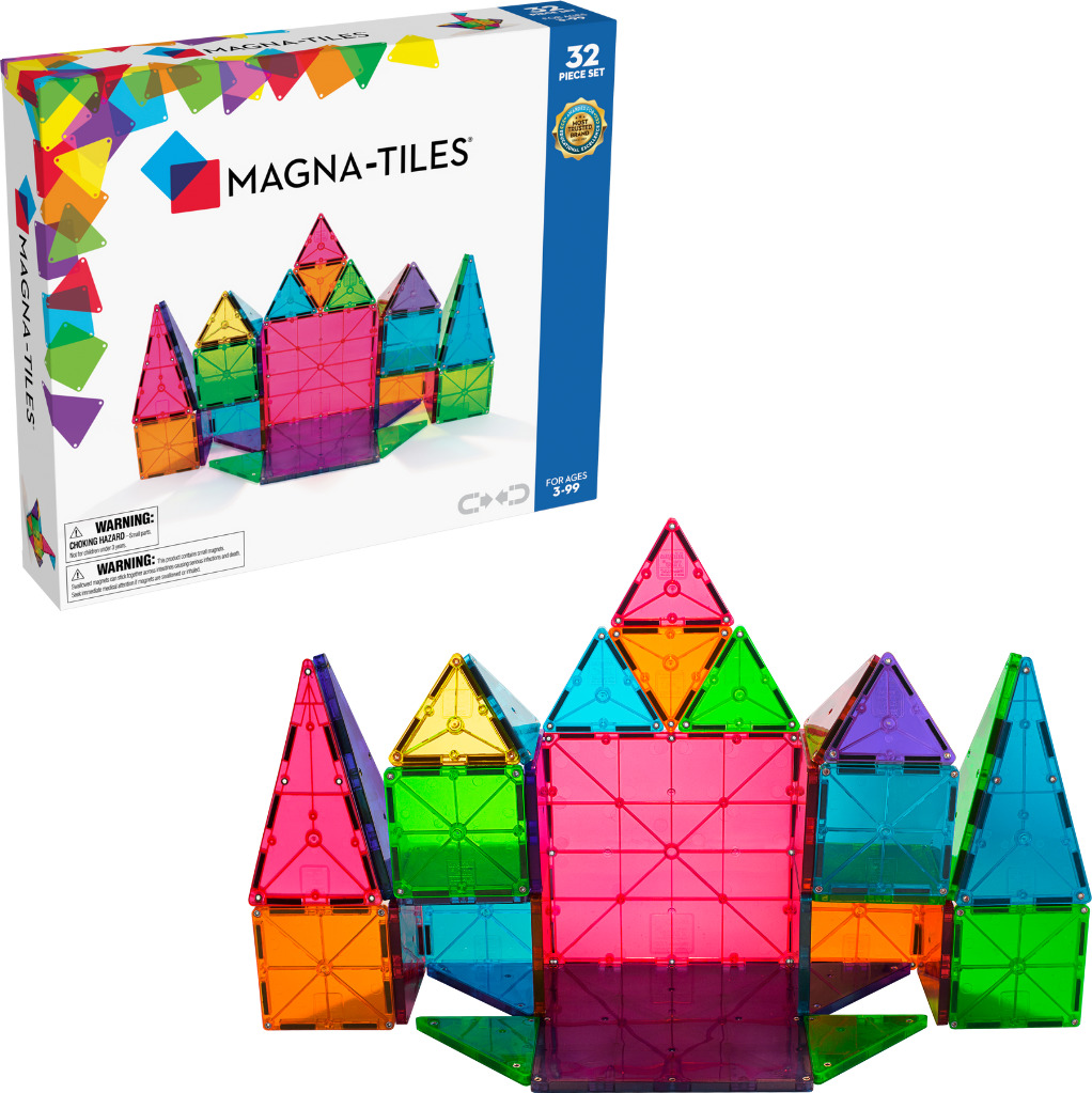 Looking to get your little one started with their first set of magnetic tiles? What about a toy that will be enjoyed by your family for many years to come? Start with the original Classic 32-piece set, only from the MAGNA-TILES brand! Vibrant and amazingly versatile, these high-quality magnetic tiles are just the right size and magnet strength for little hands and perfect for cool learning activities, fun experiments and countless hours of open-ended play.