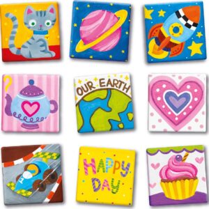 Turn ordinary tiles into art, then attach magnets for cool fridge art. Includes titles, magnets, paint strip and brush. 8yr plus