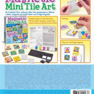 Turn ordinary tiles into art, then attach magnets for cool fridge art. Includes titles, magnets, paint strip and brush.