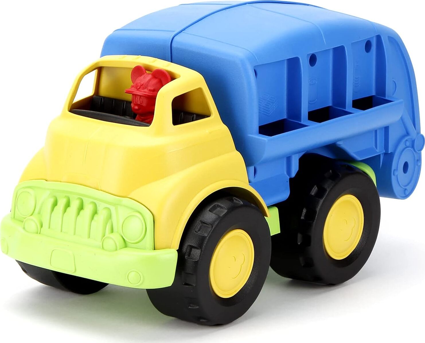 Sort bottles, cans, and paper with Mickey Mouse and the whole crew! With the Green Toysâ„¢ Disney Baby Mickey Mouse Recycling Truck, little ones will learn recycling basics while playing with this super cool truck that has a movable recycling bed and open/shut rear door! Made from 100% recycled plastic, this sturdy truck is a perfect first vehicle toy with no sharp edges or small parts. The chunky, sturdy design is great for little hands, and durable enough for indoor or outdoor play.
