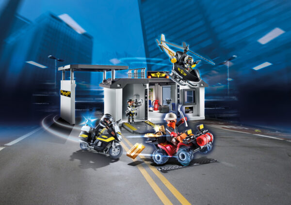 - When the call comes in, the tactical unit team grabs its gear and deploys, using both a helicopter and motorcycle to track down the bad guy before he gets away with the gold