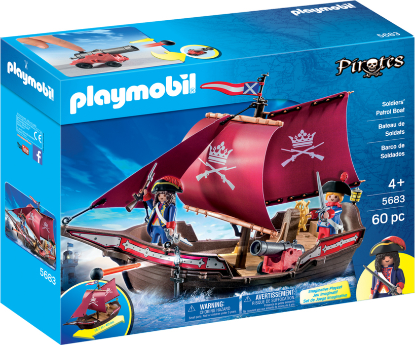 Avoid surprise attacks with the Soldiers’ Patrol Boat. With this boat, soldiers keep watch on the surrounding waters to prevent pirate raids. Use the functioning cannon to keep enemies at bay while the large red sails allow the ship to catch the wind and pick up speed. Set includes two pirate figures, ship, functioning cannon, swords, and additional accessories. Upgrade this set with the RC Underwater Motor (5536 – sold separately) to remotely guide the ship through water. Dimensions: 15.7 x 6.7 x 11.8 in (LxWxH).