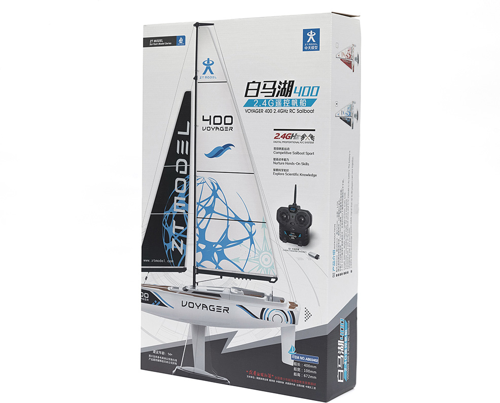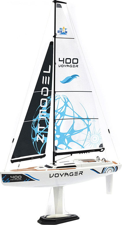 Learn about sailing with the PlaySTEAM Voyager 400 Sailboat. With no assembly required, this product is easy to use without hassle. Choose from 2 different colors-blue and red. Complete with a transmitter, control the sail angle and water rudder.