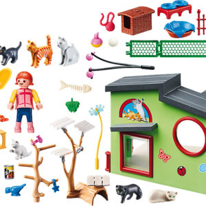 Playmobil – Purrfect Stay Cat Boarding, Item 9276. Recommended age – 4 – 9 years. It’s sure to be a Grand time at the perfect stay cat boarding. Inside, a suspended branch lets the cats climb to their hearts’ content and access the multiple hiding spots. Outside they can climb the