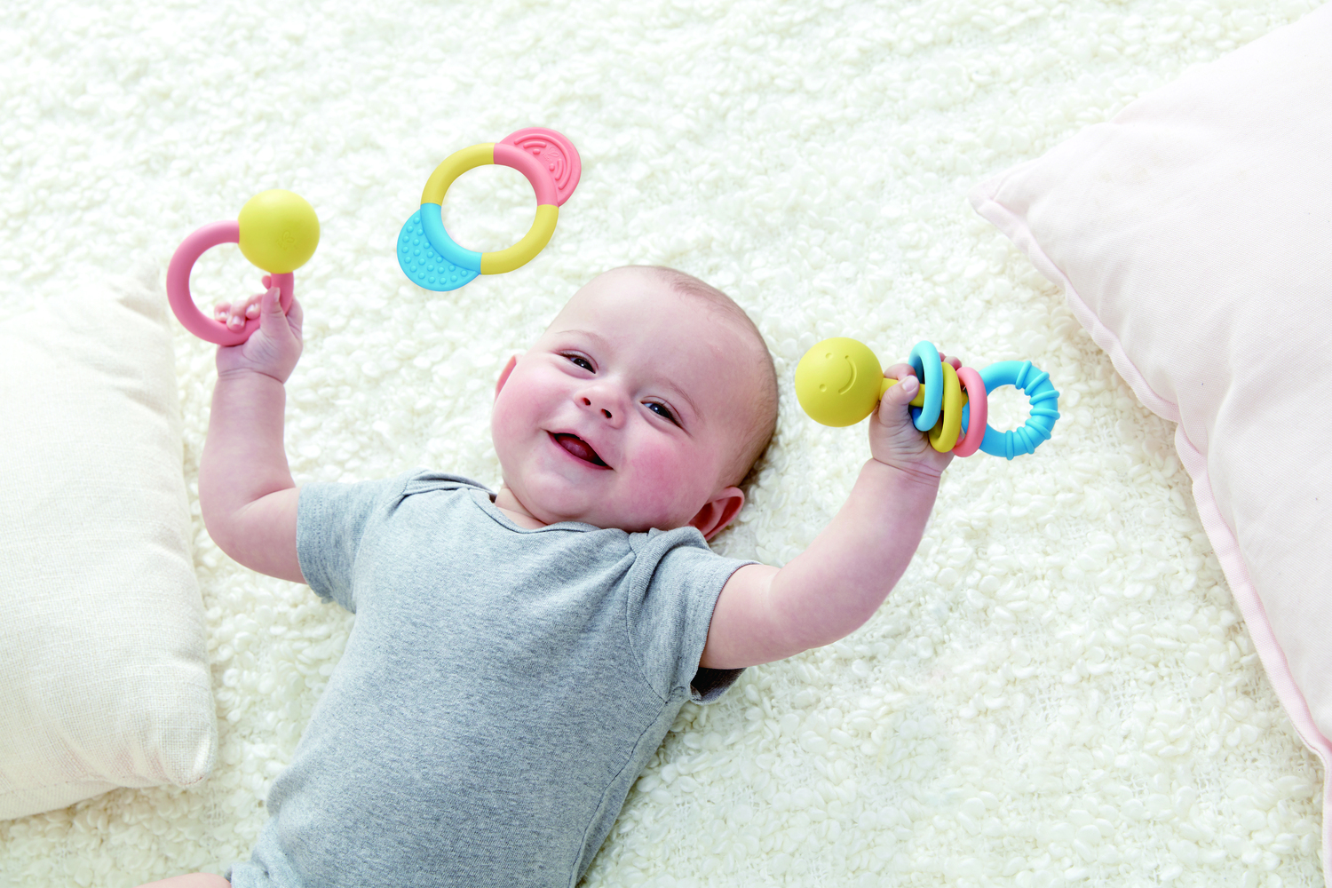 | Package Contents | 1 Rattle with Rings 1 Happy Face Rattle 1 Monkey Ears Teether |
