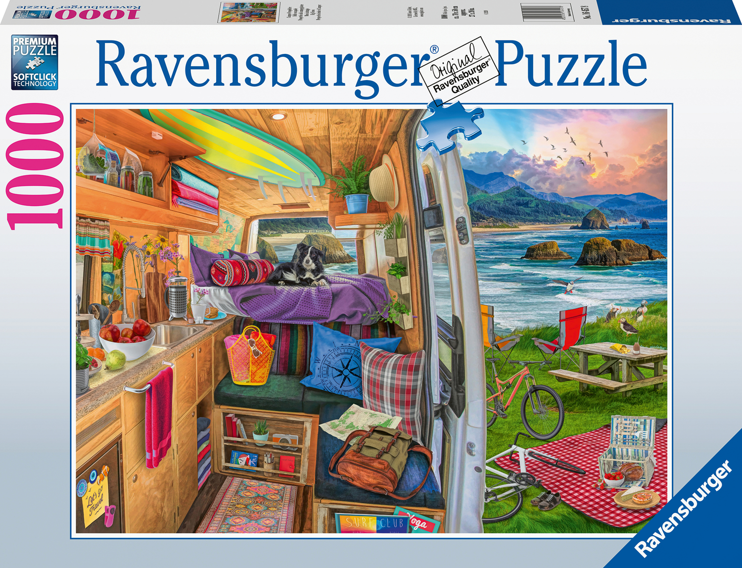 With a wide range of images and designs to choose from, including favorite characters, adorable animals, fantasy images, landscapes, monuments, and more, we’ve got the perfect puzzle for every puzzler. Assemble the pieces and travel the country in this adorable camper van that has stopped on the coast to pick you up for an adventure! One of the more popular piece counts among avid puzzlers, Ravensburger 1000 piece puzzles are create a challenging and satisfying experience from our strategic image selection to our unmatchable quality.