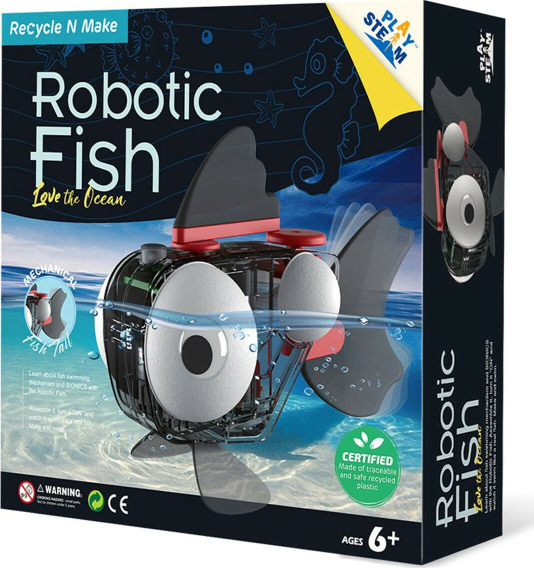 Learn about fish swimming mechanism and BIONICS with the Robotic Fish. Assemble it, turn it “ON” and watch it swim like a real fish. Make and swim.