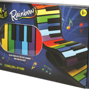 Rock out, then roll it up! Rainbow colored, flexible, completely portable piano by MukikiM with 49 standard keys.
