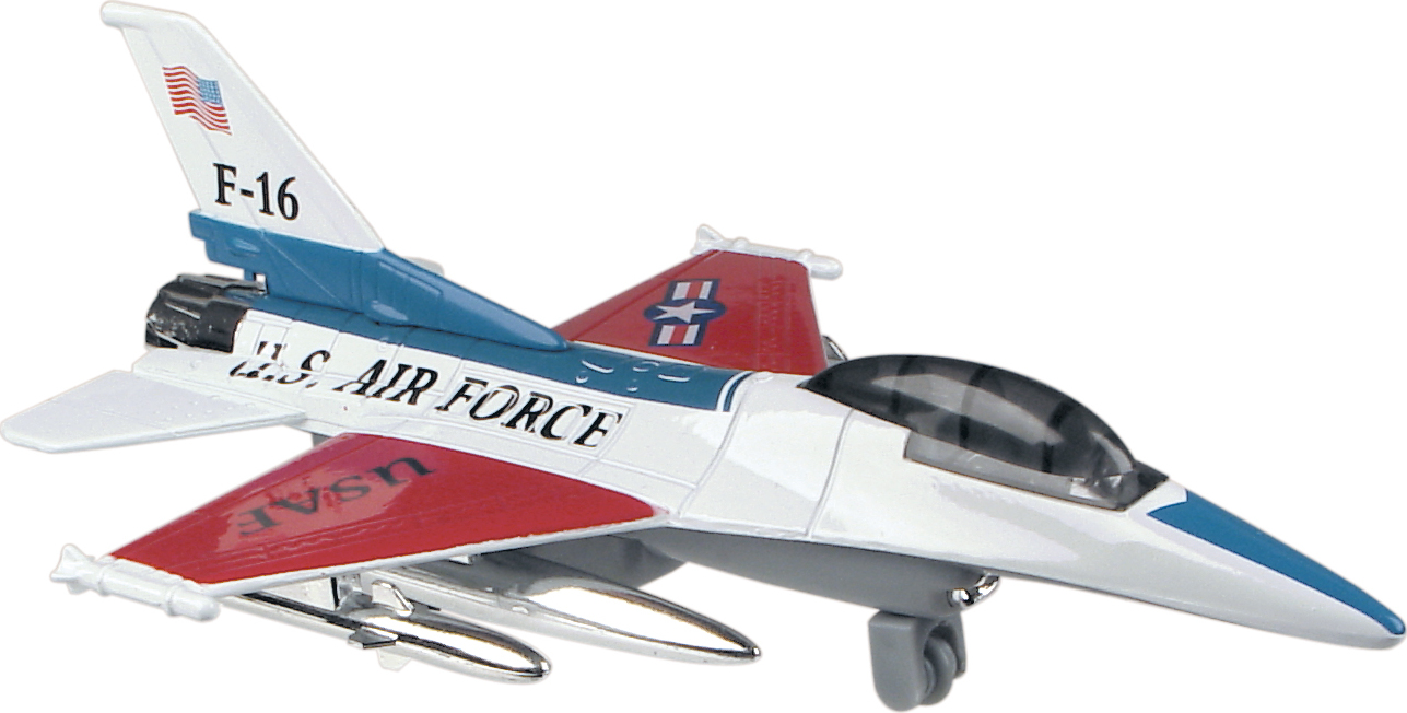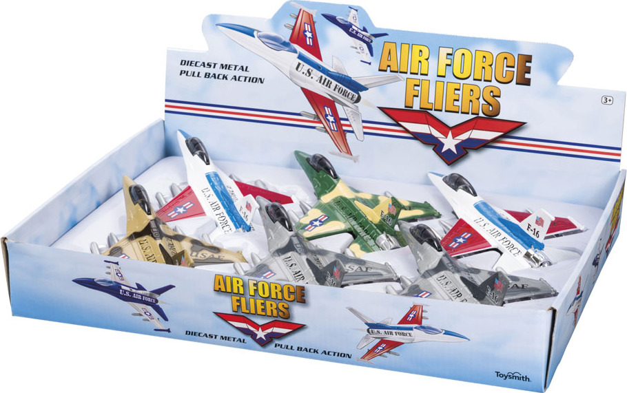 Take to the skies and let imaginations soar! Designed to look like Air Force planes, these 7-inch diecast metal planes bring aviation to life for kids. Each plane features a pullback mechanism and an opening cockpit for action-packed hours of fun. Simply pull back and watch it go!