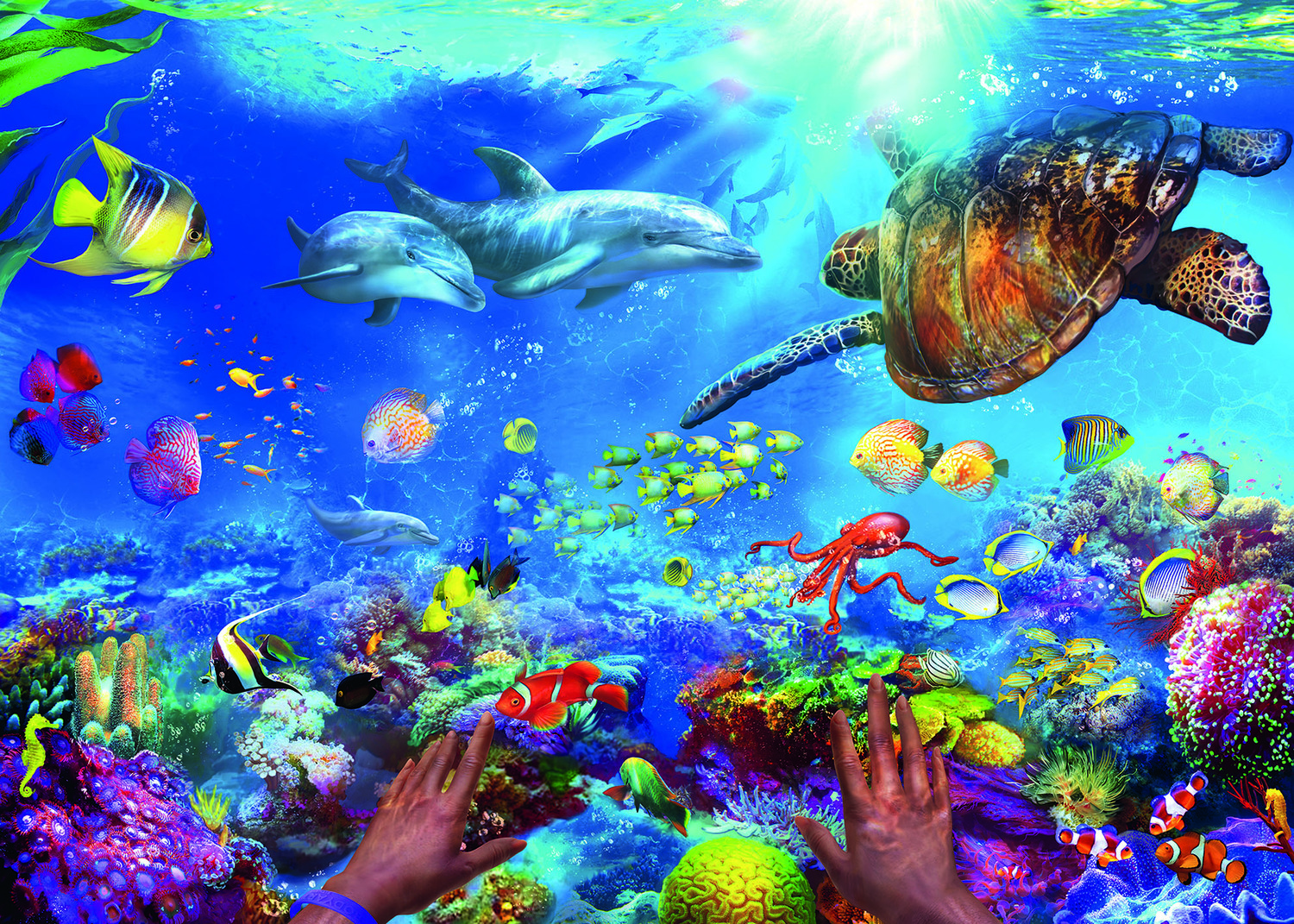 A wide underwater world is waiting to be discovered just beneath the surface! If you’ve never gone snorkeling in warm waters, our vibrant puzzle gives you a peek into the incredible views you’d see! A coral reef teems with multi-hued tropical fish while a pair of bottlenose dolphins and a serene sea turtle glide by. Every piece you puzzle will bring you closer to this underwater paradise, so dive in!