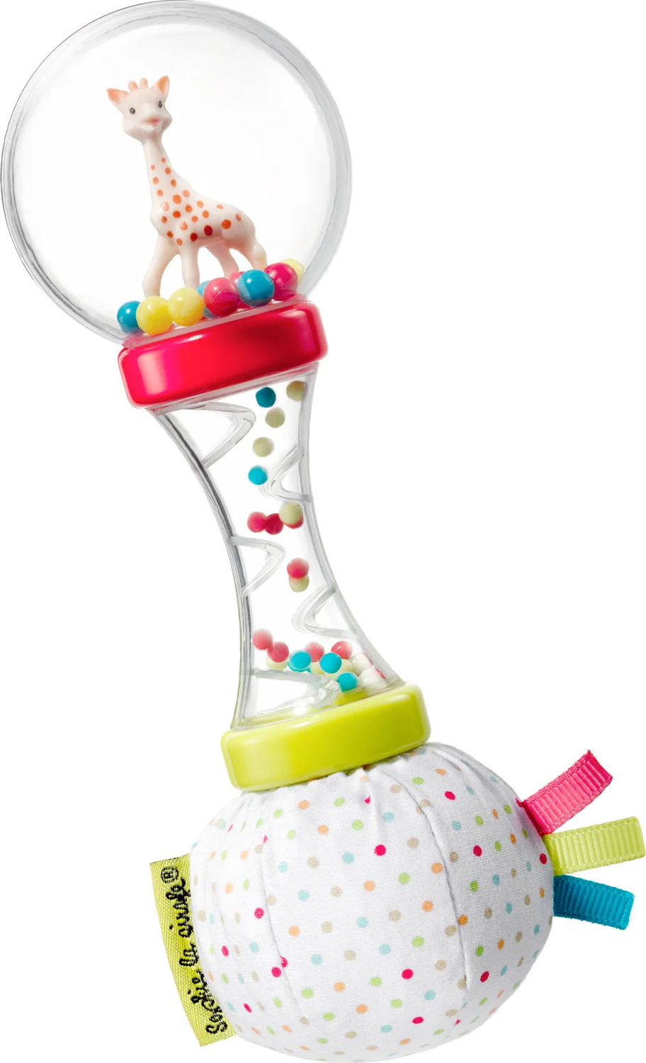 Sophie with balls to rattle on one side and crunchy paper on the other side!