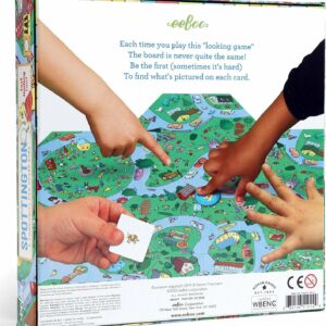 Gather around the busy village of Spottington! Lay one central board down with the other six surrounding it. Take turns flipping over a card and racing to locate what’s on the card. Once you’ve found it, place your token on the character or item and call out “Spottington.” Whoever finds the most the quickest is now the Mayor of Spottington. Illustrated by Saxton Freymann.