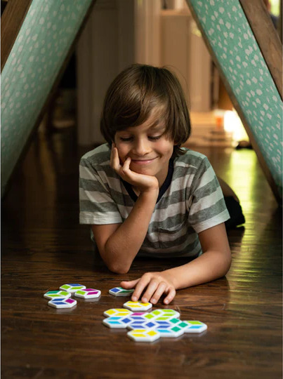 Think dominoes but with a colorful, geometric twist! Stellö is a strategic, color-matching game with all the angles on fun. Creative connections. Cunning competition. With 5+ ways to play, Stellö is sure to be a big hit with everyone!