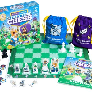 Story Time Chess is a board game that teaches chess to young children using silly stories, vibrant illustrations, custom chess pieces, and a unique chess board. The stories and supporting materials communicate the rules of chess to children ages 3 and up in a way that makes learning chess simple and fun. Best of all, no chess experience is required for parents or children to learn.