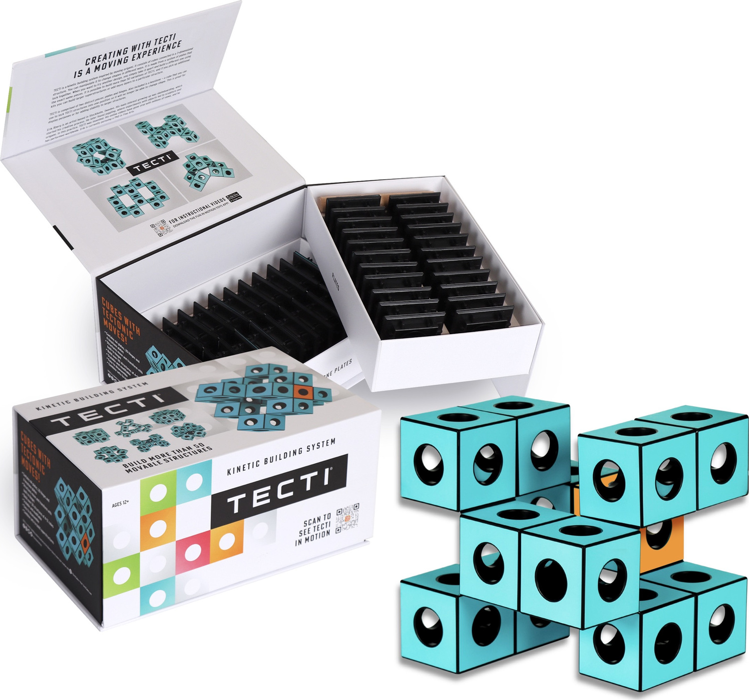 TECTI presents a turning point in building toys with an innovative kinetic building system. With TECTI, people can build over 40 kinetic structures out of interlocking, movable cubes.
