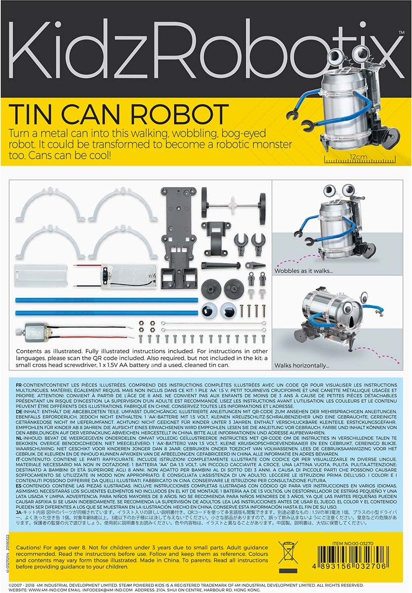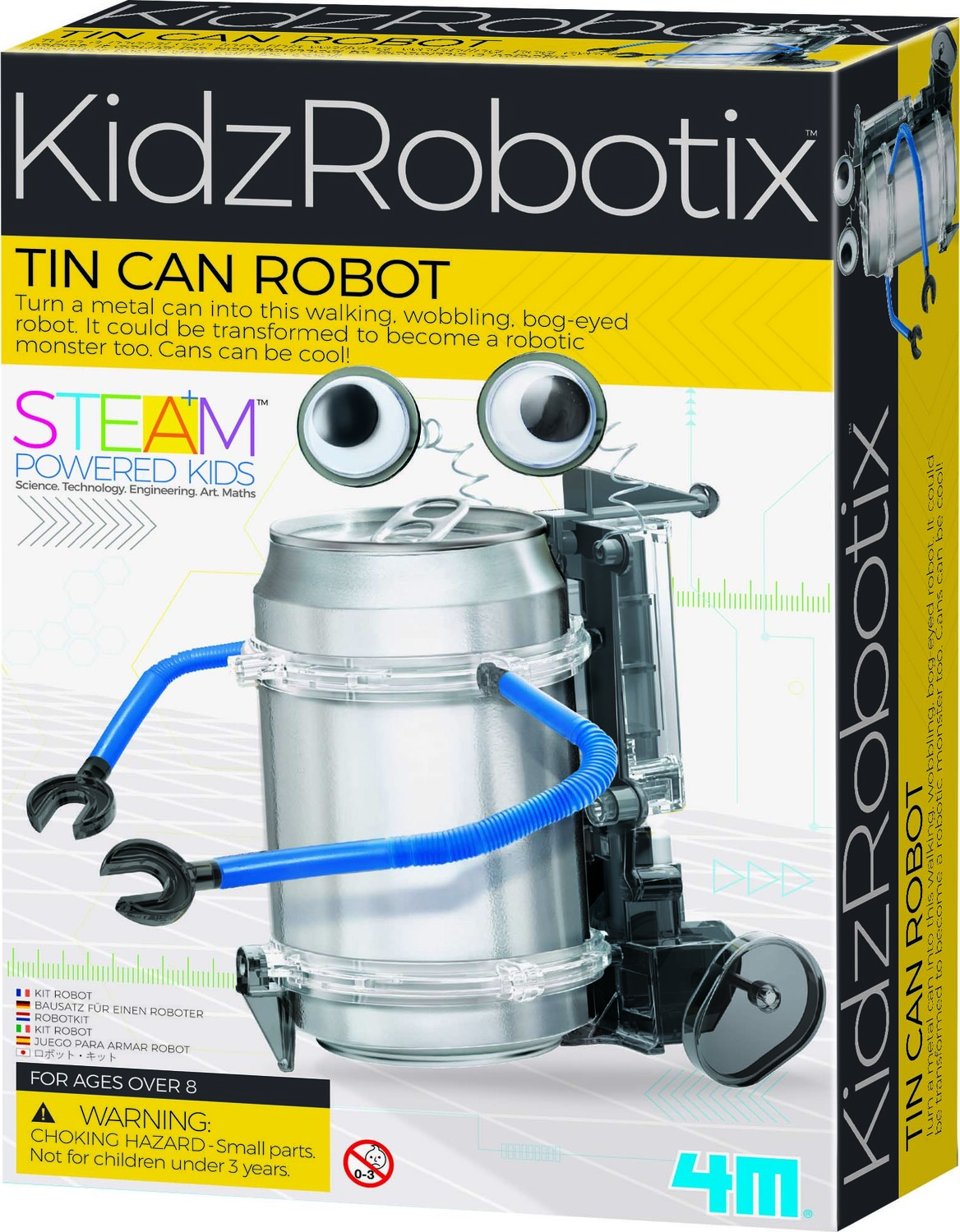 Recycle a soda can by turning it into a silly robot that can move. Kit includes parts and instructions. Just add a incanin do attitude. Requires one AA battery not included.
