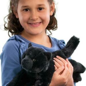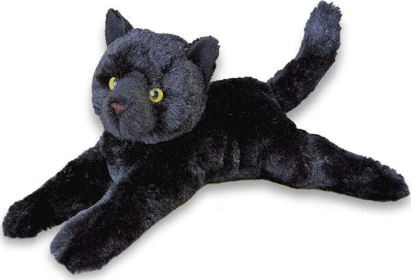 Tug the Black Cat is one handsome feline with his coal black coat of plush fur and striking olive green eyes! Featuring only the softest, silky materials, Tug is irresistibly cuddly and unbelievably soft. His stretched out, lounging pose makes him especially ideal for hugs and snuggles. Soft polyester fill and a gently weighted body gives Tug a realistic flop that will win your heart and make him a favorite when it comes time to curl up and relax. His beautiful bright-eyed expression makes Tug even more lifelike and engaging. You won’t find a more cuddly companion, invite Tug the elegant Black Cat stuffed animal to join you whenever it’s time to snuggle up and snooze! Â