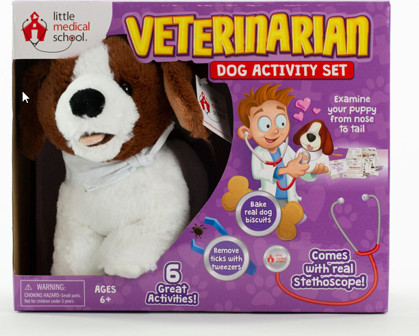 American Kennel Club approved, this set includes a premium plush dog, working stethoscope, and more, perfect for endless creative role play. Perform all of the activities, then conduct a graduation ceremony complete with veterinary diploma! Children can play on their own or with friends and family.