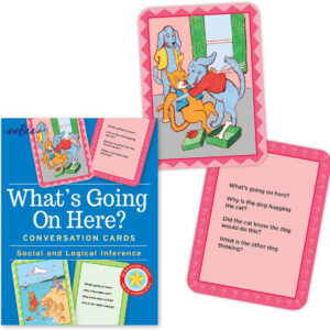 What’s Going On Here? conversation cards help us to understand the friendly illustrations by making inferences using logic, observation, and social experience. What’s Going On Here? conversation cards cultivate valuable communication skills and help build an essential foundation for social literacy, analyzing clues, and problem solving. The cards deploy artwork by Saxton Freymann, delightfully demonstrating a broad range of emotions and situations.
