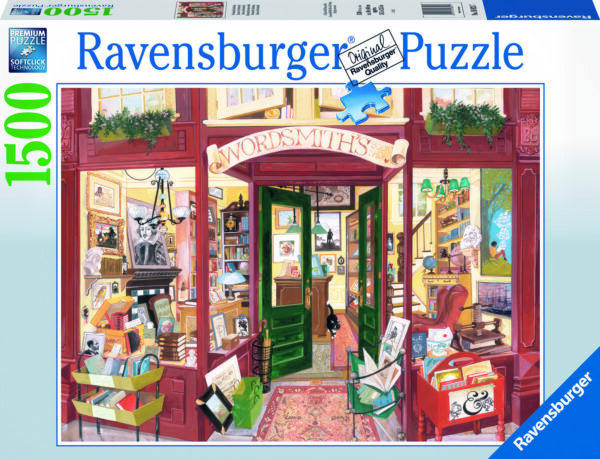 Welcome to Wordsmith’s, where Tolkien the Tuxedo cat is ready to greet you, and your new favorite book is just waiting to be discovered! All types of wondrous works line the shelves — simply pick one and curl into the soft, comfy chair to enjoy it. Head upstairs to explore even more volumes, from biography to philosophy, literature to nature, history to mystery and so much more. A perfect puzzle for any book or reading enthusiast and for all who love the magic of the written word!