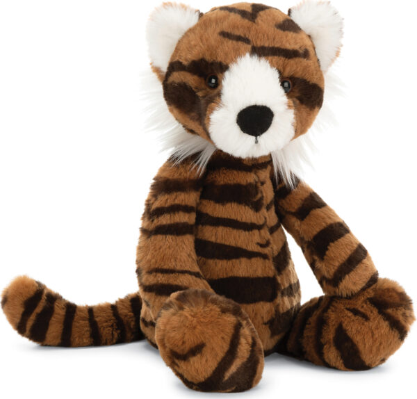 Wumper Tiger is always so dapper, in bold, jazzy stripes of ginger and black! This cuddly cub is soft as can be, with big squidgy paws, silky cream whiskers and a long, squashy tail. This cuddly cub is a secret snuggler, so why not invite a tiger to tea?