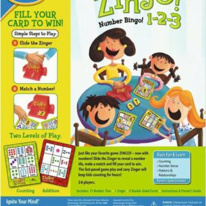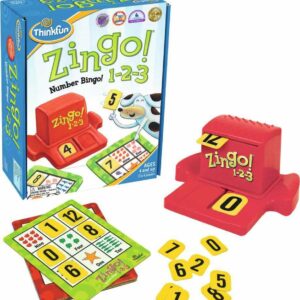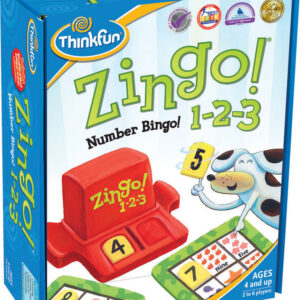 Build reading and counting skills with Zingo! 1-2-3. Match numbered spaces on your challenge card with number tiles revealed by the Zingo! Zinger. The first player with a full card wins the game by yelling “Zingo!” Two levels of play focus on counting and addition. Zingo! 1-2-3 builds early number sense skills in young players as they associate digits with images and text, and supports early math learning through counting and pattern recognition. This fast-paced game will have the whole family yelling “1-2-3 PLAY!”
